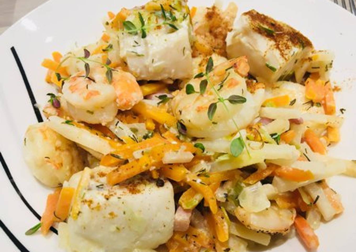 Hey everyone, I hope you're having an incredible day today. Today, we're going to prepare a special dish, Blanquette de Dos de Cabillaud et Crevettes. One of my favorites. For mine, I am going to make it a bit tasty. This is gonna smell and look delicious.
